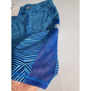 Keywords: Tommy Hilfiger, bike shorts, high rise, athletic shorts, sportswear, workout shorts, yoga shorts, running shorts, blue shorts, geometric pattern, mesh panels, XS, extra small, activewear, gym shorts