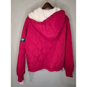 Tommy Hilfiger Sport NWT Quilted Hooded Jacket XL Red Sherpa Lined Zip Up
