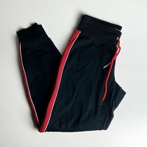 Tommy Hilfiger Sport Track Pants in Black with Red Mesh Stripes - Size M NWOT