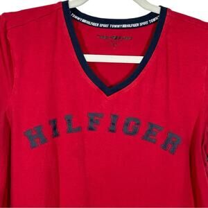 Tommy Hilfiger Sport Vintage Red Ringer V-Neck T-Shirt Size Medium Relaxed Fit