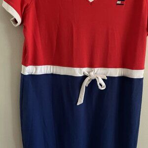 Tommy Hilfiger Sport Women L Colorblock Preppy V-Neck Drawstring T-Shirt Dress.