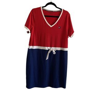 Tommy Hilfiger Sport Women L Colorblock Preppy V-Neck Drawstring T-Shirt Dress