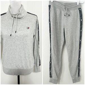 Tommy Hilfiger Sport XS Jogger Set Top Cowl Neck Sweatshirt Pant Tapered Leg EUC
