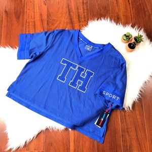 Tommy Hilfiger Sports Top Women's Logo Jersey Size L Blue