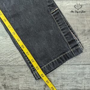 In sleek black, a pair of jeans that gleams, these Tommy Hilfiger denims are as cool as ice creams. Gently used, with a cotton/spandex blend to infuse, they're the perfect straight-leg choice to amuse!