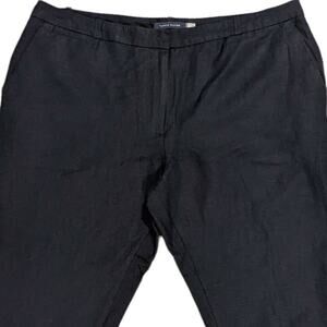 Tommy Hilfiger Straight Leg Pants Women 12 Mid-Rise Dark Blue Linen Blend i75