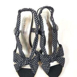 Tommy Hilfiger Straw Wedge Sandals Polka-dot bow knot tie Espadrille Size 7.5