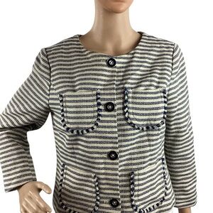 Tommy Hilfiger Striped Cotton Lined Button Jacket Navy Cream Size 8