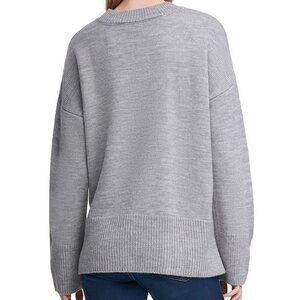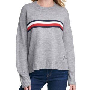 * Color: Grey, Cozy, Crewneck, Bold Stripe Detail at Front, Embroidered Logo at Hip, Ribbed Trim , Oversized Fit
