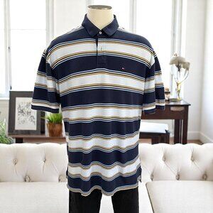 Tommy Hilfiger Striped Polo Shirt XXL Navy Y2K Retro Menswear Classic Fit