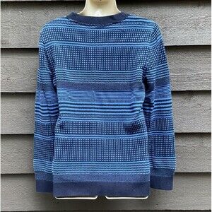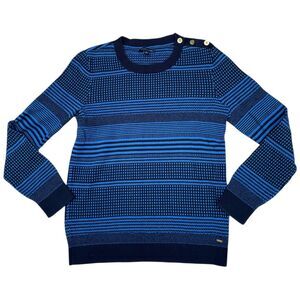 Tommy Hilfiger womens blue and navy striped knit sweater, size Medium.