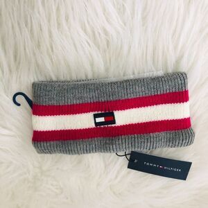 Tommy Hilfiger Striped Ribbed Headband With Flag Patch Grey Heather One Size NEW