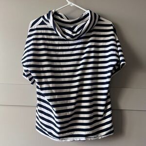 Tommy Hilfiger Striped Short Sleeve Womens Small White Blue Preppy Nautical Cowl Neck Coastal Country Club