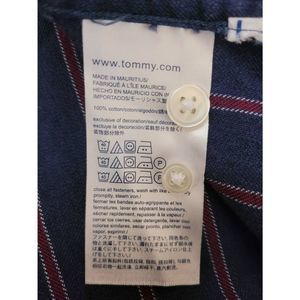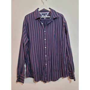 Tommy Hilfiger Stripped Button Down Shirt Mens Size XL Slim Fit Blue Red Preppy