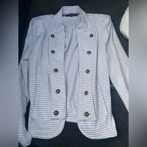 Tommy Hilfiger|| Stripped Cotton Military Blazer, with gold accent buttons.
