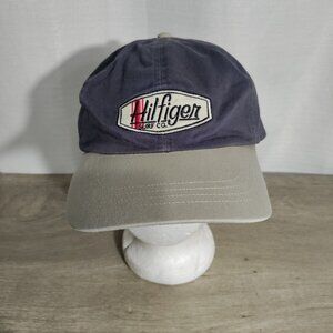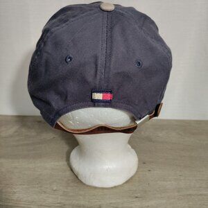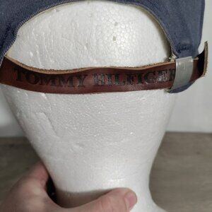 Tommy Hilfiger Surf Company Logo Leather Strapback Hat Cap Beige Blue VTG 99
