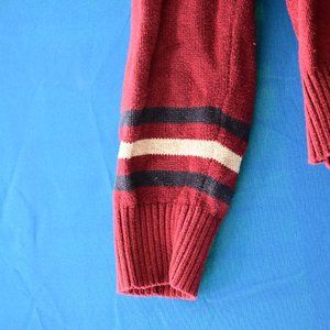 This red Tommy Hilfiger prominently features the a blue "H" on brand with it's font. This sweater is in great condition.