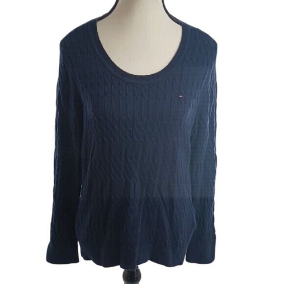 Tommy Hilfiger Sweater Blue Knit Classic Stretch Long Sleeve Womens Size L