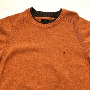 Tommy Hilfiger Sweater Chunky Knit Crew Neck Raglan Flag Cotton Heather Orange L