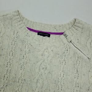 Tommy Hilfiger Sweater Dress sze S Cable Knit Flecked Wool Angora Ivory Grey Zip