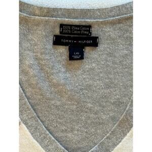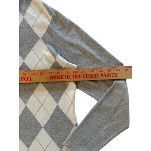 Tommy Hilfiger Sweater Gray White Argyle Diamond V-Neck Golf Preppy Pullover 100% Pima Cotton Womens XL