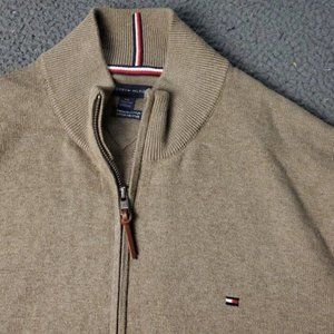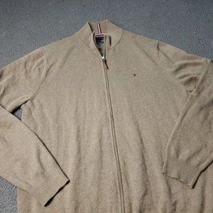 Tommy Hilfiger Sweater Jacket Mens 2XL XXL Zip Up Tan Beige