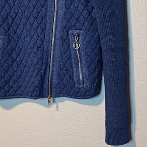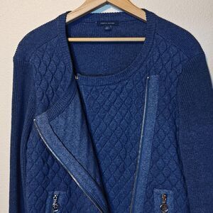 Tommy Hilfiger Sweater Jacket Womens Large Blue Quilted Moto Asym Zip Pockets
