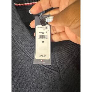 Tommy Hilfiger Sweater Men Medium Blue V Neck Preppy Academia Knit Nautical NWT