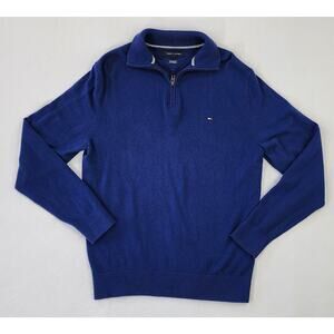 Tommy Hilfiger Sweater Mens Large Blue Cashmere Pima Cotton Classic 1/4 Zip