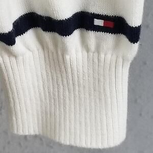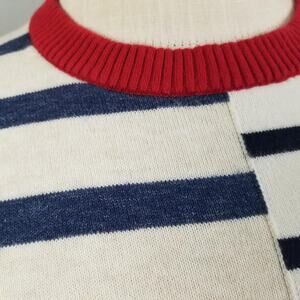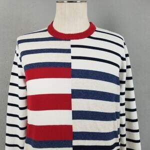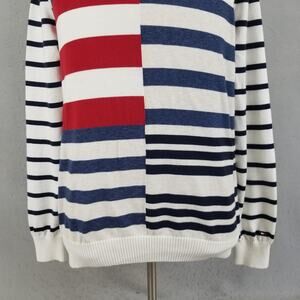 Tommy Hilfiger Sweater Mens Large White Navy Red Striped Crewneck Cotton Knit