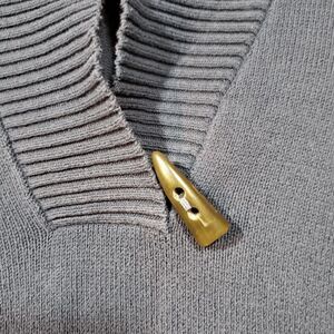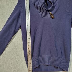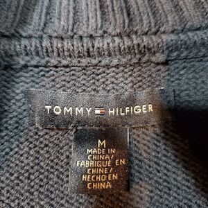 Tommy Hilfiger Sweater Mens Medium Blue Knitted Cotton Shawl Neck Logo Pullover