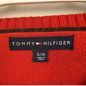 Tommy Hilfiger Sweater Mens XL Red Black Stripe Cotton Crew Neck Casual Preppy