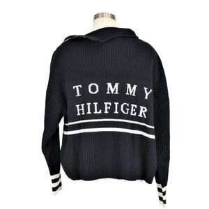 Tommy Hilfiger Sweater Ribbed Knit Shoulder Zip Varsity Turtleneck Blue Sz 2XL