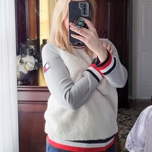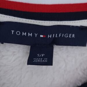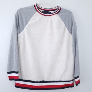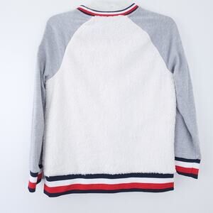 Tommy Hilfiger Sweater Sherpa Small, White, Gray, Red White Blue Stripe Trim