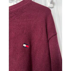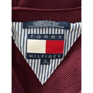Tommy Hilfiger Sweater Size XL V Neck Long Sleeve Pullover Burgundy Knit Preppy
