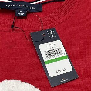 Tommy Hilfiger Sweater Women L Red Graphic Polar Bear Plaid Scarf Preppy Holiday