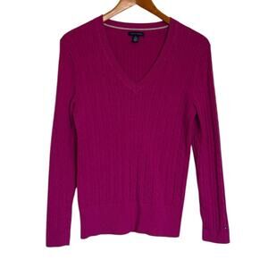 Tommy Hilfiger Cable Knit V Neck Sweater XL Women Pink