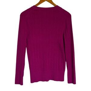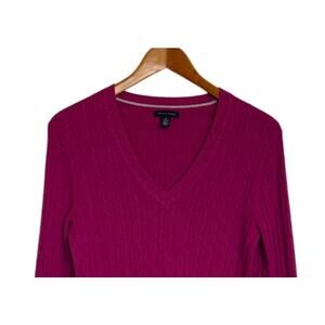 Tommy Hilfiger Sweater Women X Large Pink Fisherman Tennis Cable Knit V Neck