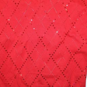 Charming Tommy Hilfiger Sequins Sweater Women's Red color Argyle Pattern long sleeve v-neck tees shirt blouse tank top, in pre-owned very good condition.