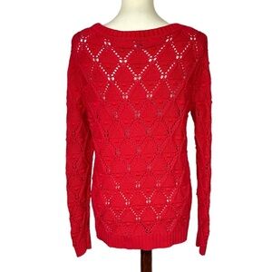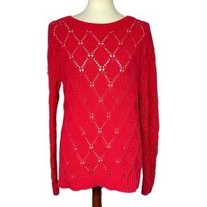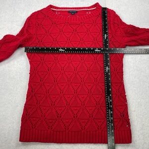 Tommy Hilfiger Sweater Womens Large Red Open Weave Diamond Pattern Knit 100% Cotton Crewneck. Very Good Pre-owned condition. No found flaws or stains. See photos for measurements. Ships quickly from smoke-free home.