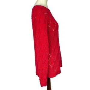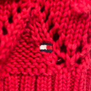 Tommy Hilfiger Sweater Womens Large Red Open Weave Knit 100% Cotton Crewneck