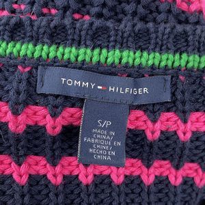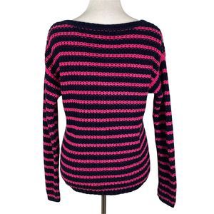 Tommy Hilfiger Sweater Womens Navy Blue Pink Striped Long Sleeve Knit Pullover