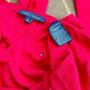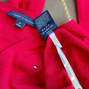 Tommy Hilfiger Sweater Women’s Red Cotton V-Neck Long Sleeves with Logo (M)