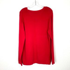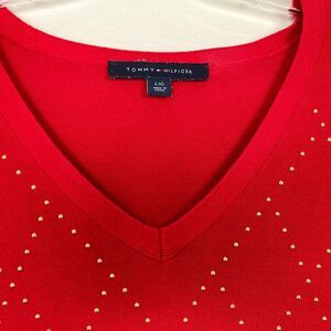Tommy Hilfiger Sweater Women's Size L Red Gold Studs Pull On V- Neck Long Sleeve