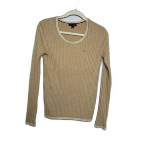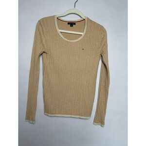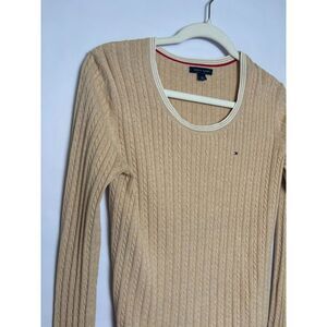 Tommy Hilfiger Sweater Women's Sz Small Tan Brown Cable Knit y2k Preppy Twilight