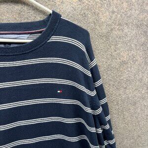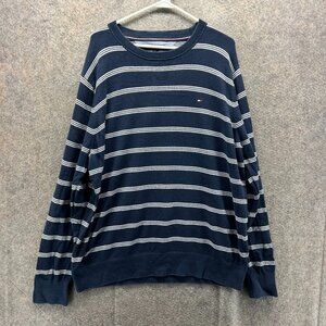 Tommy Hilfiger Sweatshirt Mens XXL Blue Striped Crewneck Pima Cotton Pullover