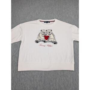 Tommy Hilfiger Sweatshirt Womens Medium White Polar Bear Heart Crewneck Pullover