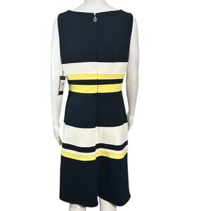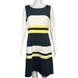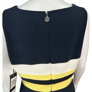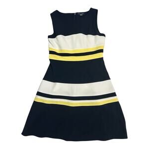 Tommy Hilfiger Sz 10 Dress ALine Navy White Yellow Crepe Stretchy Stripe NWT $99