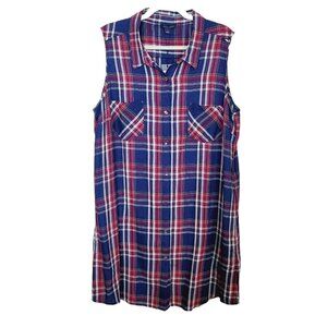 Tommy Hilfiger Sz 18 Sleeveless Plaid Shirt Dress Signature Colors Pockets NEW