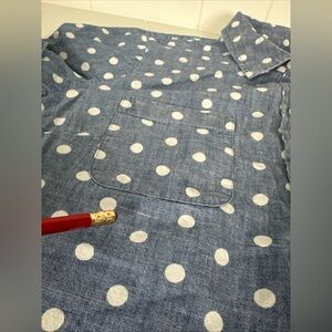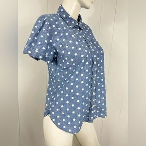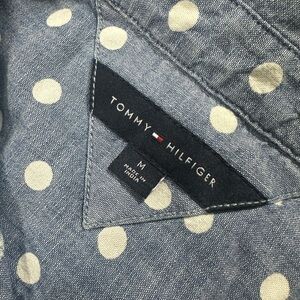 Tommy Hilfiger Sz M Blue & White Polka Dots Casual Button Up Shirt Short Sleeve